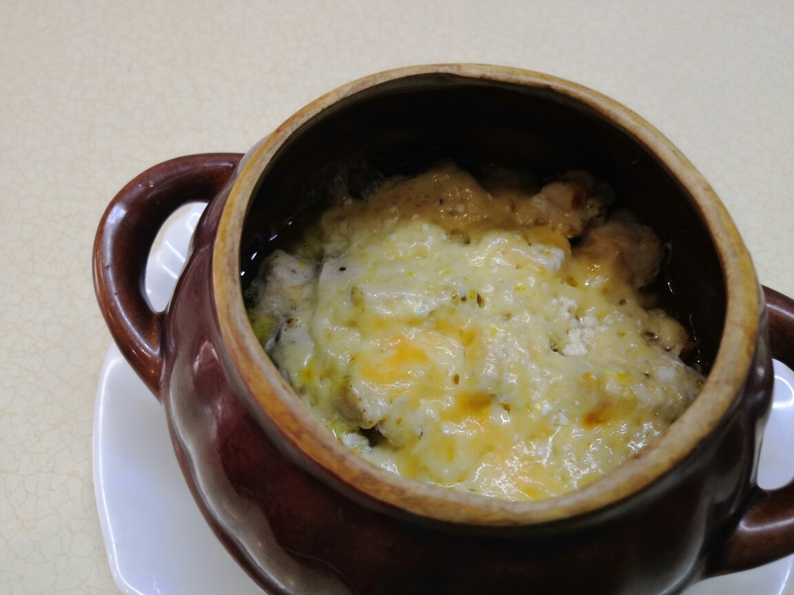 Далее процесс сборки: в горшочки сначала помещается морковь, затем лук. Йогурт распределяется между слоями. После этого выкладывается куриное филе и снова смазывается йогуртом. Важно наливать кипяток до уровня мяса, чтобы получить вкусный бульон, или добавить чуть меньше воды, если такой вариант не нравится. Завершает приготовление тертый сыр, который равномерно распределяется в горшочках.