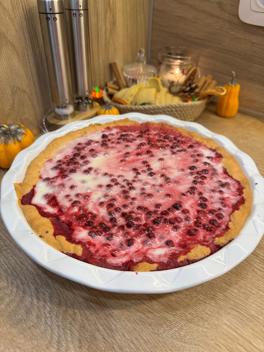 После ночи в холодильнике пирог станет влажным, ароматным и невероятно нежным. Кислинка брусники отлично сочетается с сладким кремом, делая десерт настоящим наслаждением! Этот пирог — идеальное угощение как для домашнего ужина, так и для праздничного стола. Яркий, эффектный и невероятно вкусный — он обязательно произведет впечатление!