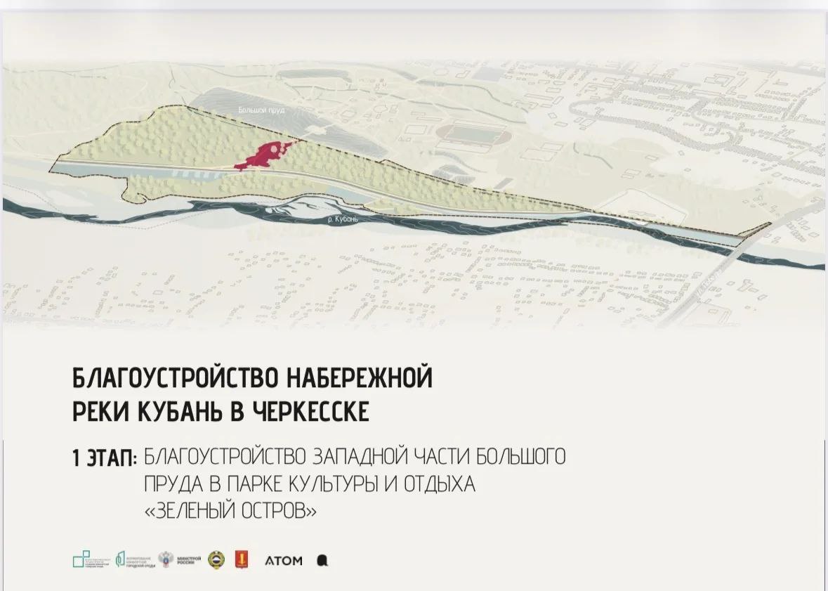 По результатам голосования победил проект благоустройства набережной реки Кубань в Черкесске (1 этап): западной части Большого пруда в ПКиО «Зелёный остров»: 805 голосов — 46,7%.