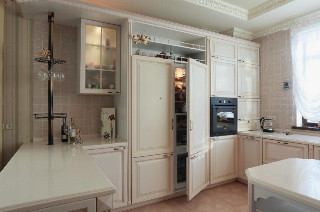 - Эстетическая целостность: Основной задачей встроенного решения является создание гладкой и цельной поверхности. Чем точнее будут замеры, тем лучше холодильник вписывается в кухонный гарнитур.