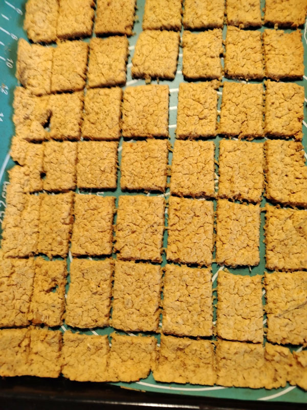 После выпекания дайте чипсам полностью остыть на противне, а затем аккуратно разделите их по намеченным линиям. Эти хрустящие закуски прекрасно подойдут как перекус или дополнение к основному блюду. КБЖУ на 100 г составляет 210/9,0/9,0/23,0, из которых 30% — клетчатка, а 60-62% — крахмал.