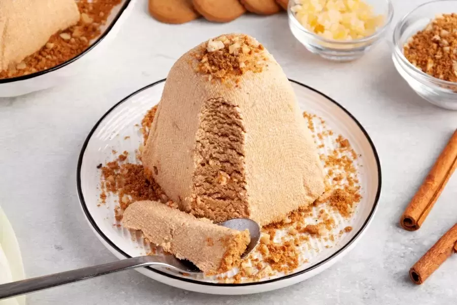 Творожная пасха без яиц — это прекрасно сбалансированное десертное лакомство, которое подарит вашим близким непревзойдённое наслаждение. Лакомство впечатляет своей кремовой текстурой, в которой сочетаются свежий творог, варёное сгущённое молоко, цукаты и нотки корицы. Это блюдо станет ярким акцентом на любом столе, будь то завтрак или праздник, и внесёт в атмосферу домашнего уюта свою особую гармонию.