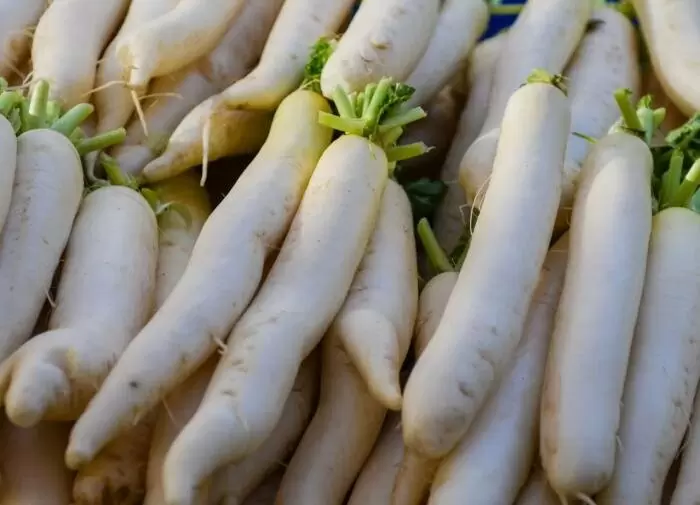 Не менее важно, что дайкон — это гипоаллергенный продукт, что делает его безопасным для людей, склонных к аллергиям. Всего 100 граммов дайкона содержат 21 килокалорию и обеспечивают 34% суточной нормы витамина C. Также было замечено, что он содержит фермент, способствующий усваиванию крахмалистых продуктов.