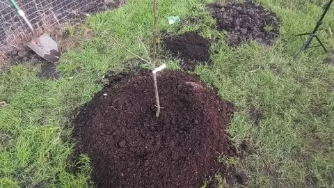 Следующий шаг — замачивание. Важно опустить саженец корнями в ведро с водой на несколько часов, что поможет корням напиться и подготовиться к встрече с почвой. Яма для саженца должна быть просторной — глубиной около 60–70 см и диаметром около метра. На дно следует положить холмик из смешанной с перегноем и золой плодородной земли.