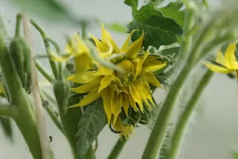 Махровые цветы представляют собой сросшиеся соцветия, из которых могут вырасти очень крупные плоды. Это явление наблюдается не только у томатов, но и у других культур, например, у садовой земляники и огурцов. Появление таких экзотичных цветков может быть вызвано: