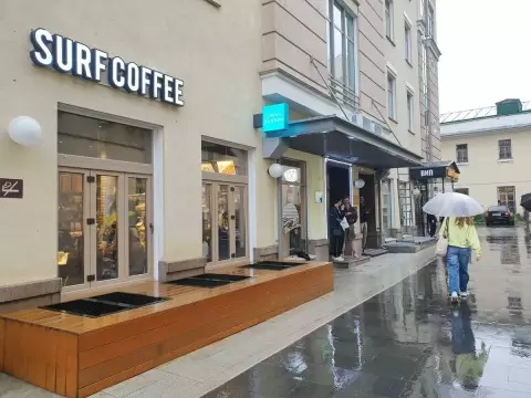 С выходом на веранду откроется совершенно новая атмосфера: крытую и комфортную, она защищает посетителей от дождя и ветра, предлагая потрясающий вид на столицу с высоты седьмого этажа. Просторные диваны и кресла в светлых тонах делают уединение еще более приятным, а современный стиль интерьера с деревянными элементами создает ощущение природной гармонии.
