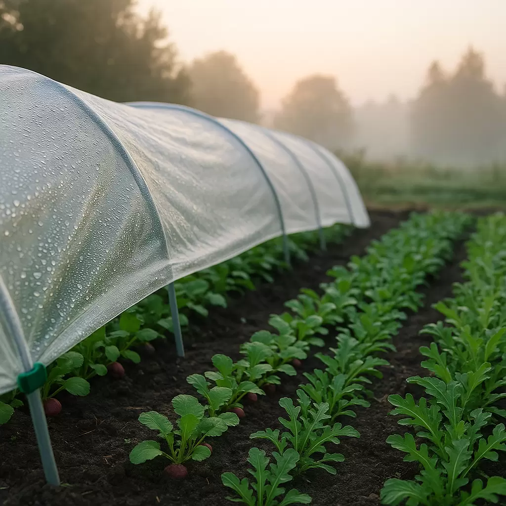 - Укрытие: Используется пленка 30 мкм или спанбонд 30–42 г/м?, оптимально — комбинация пленки и спанбонда внутри для защиты от конденсата.