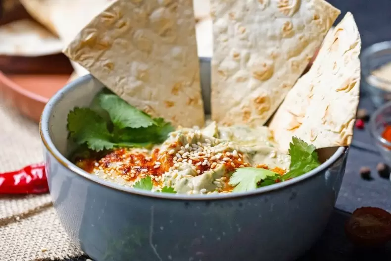 Этот великолепный баклажановый дип, родом из Леванта, сам по себе стал настоящей гастрономической фишкой. Он сочетает в себе насыщенность печеного баклажана, бархатистую текстуру тахини и свежесть лимонного сока. В каждой ложке — гармония вкусов, которая перенесет в солнечные страны с богатой историей.