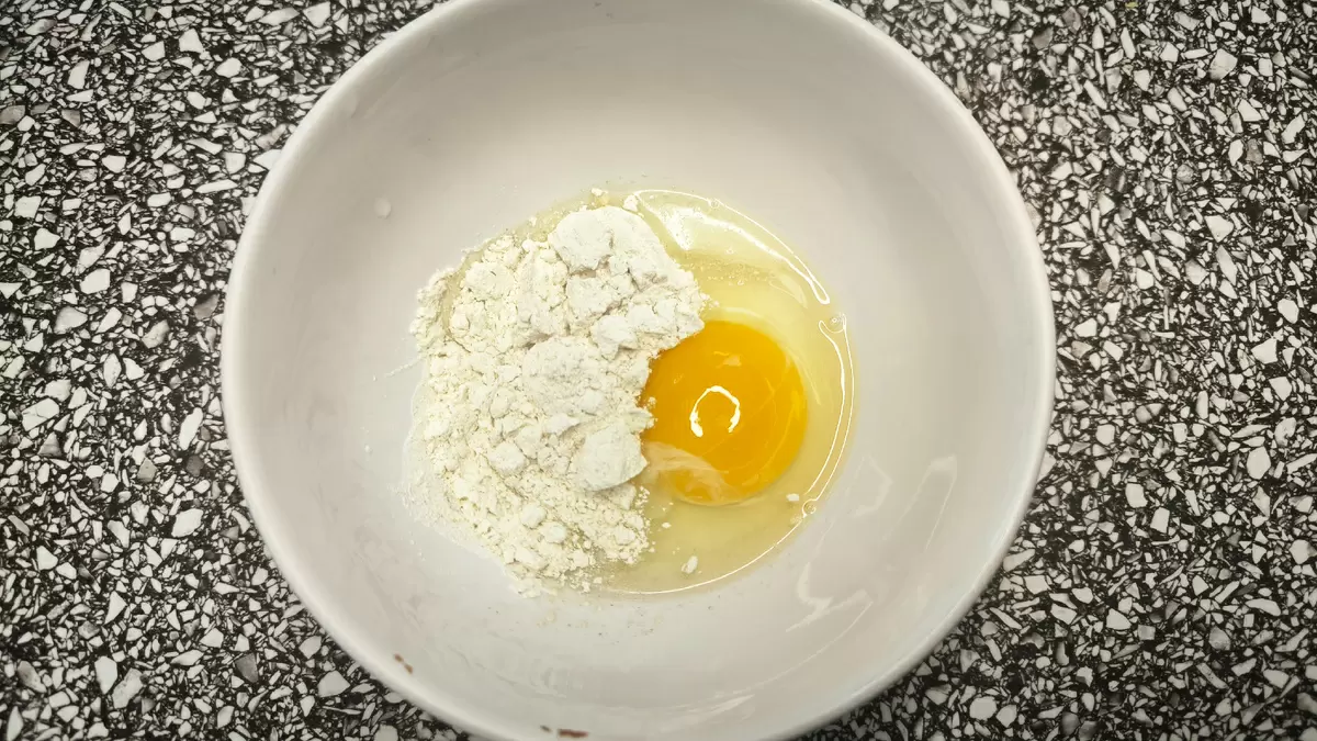 Сначала нужно взбить яйцо с овсяной мукой и солью в блендере до получения однородной массы. Если она окажется слишком густой, добавьте немного воды, чтобы достичь консистенции, схожей с тестом для оладий.
