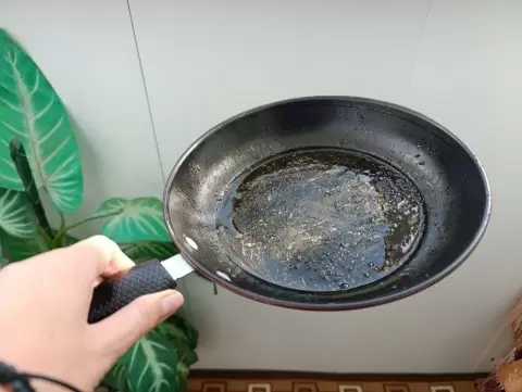 - Жир: Во время жарки жир разбрызгивается и оседает на стенках и ручке сковородки, образуя стойкий налет.