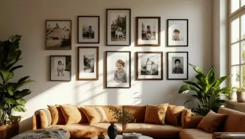 Одним из самых простых способов добавить жизни стенам является оформление их личными фотографиями. Забудьте о серийных репродукциях. Соберите коллекцию снимков — пейзажи, портреты и необычные моменты. Развесите их в разнообразных рамках, создав асимметричную композицию. Такие стены начнут «разговаривать», напоминая о ярких мгновениях вашей жизни.
