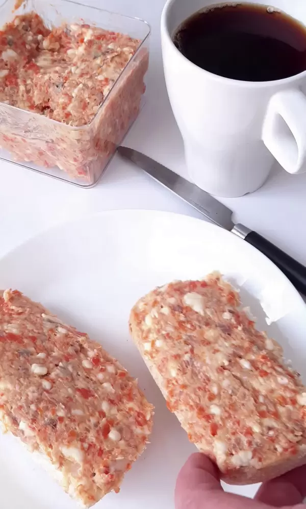 Для любителей острых ощущений можно добавить немного черного перца или каплю лимонного сока. Хранится такая намазка в закрытом контейнере в холодильнике до 3-4 дней, хотя чаще всего её быстро съедают на празднике.