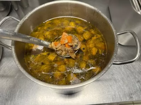 - Овощи: Хотя традиционно овощи нарезают крупно, для ускорения процесса можно резать их мельче. Например, натирание картофеля на терке не только ускоряет его приготовление, но и придаёт супу необходимую густоту.