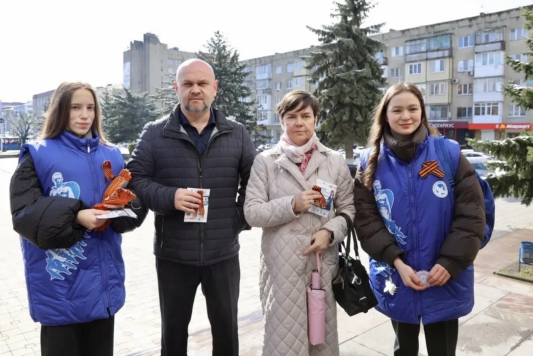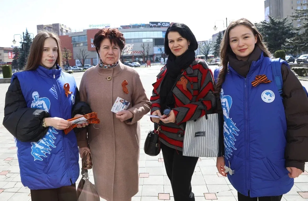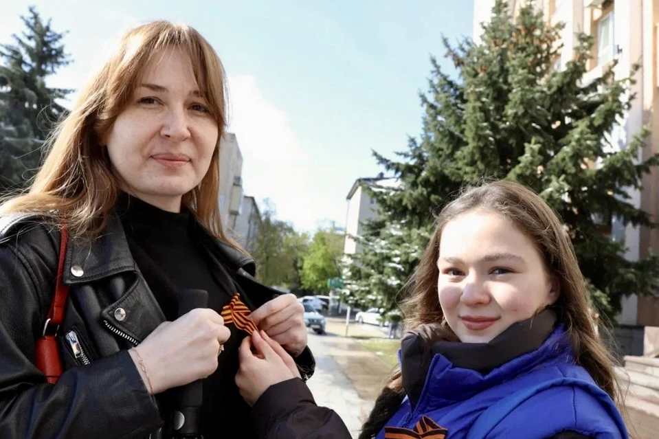 «Волонтеры Победы» и воспитанники военно-патриотических центров продолжают акцию «Георгиевская лента» в республиканской столице. До 9 мая планируется раздать 6 000 георгиевских лент.