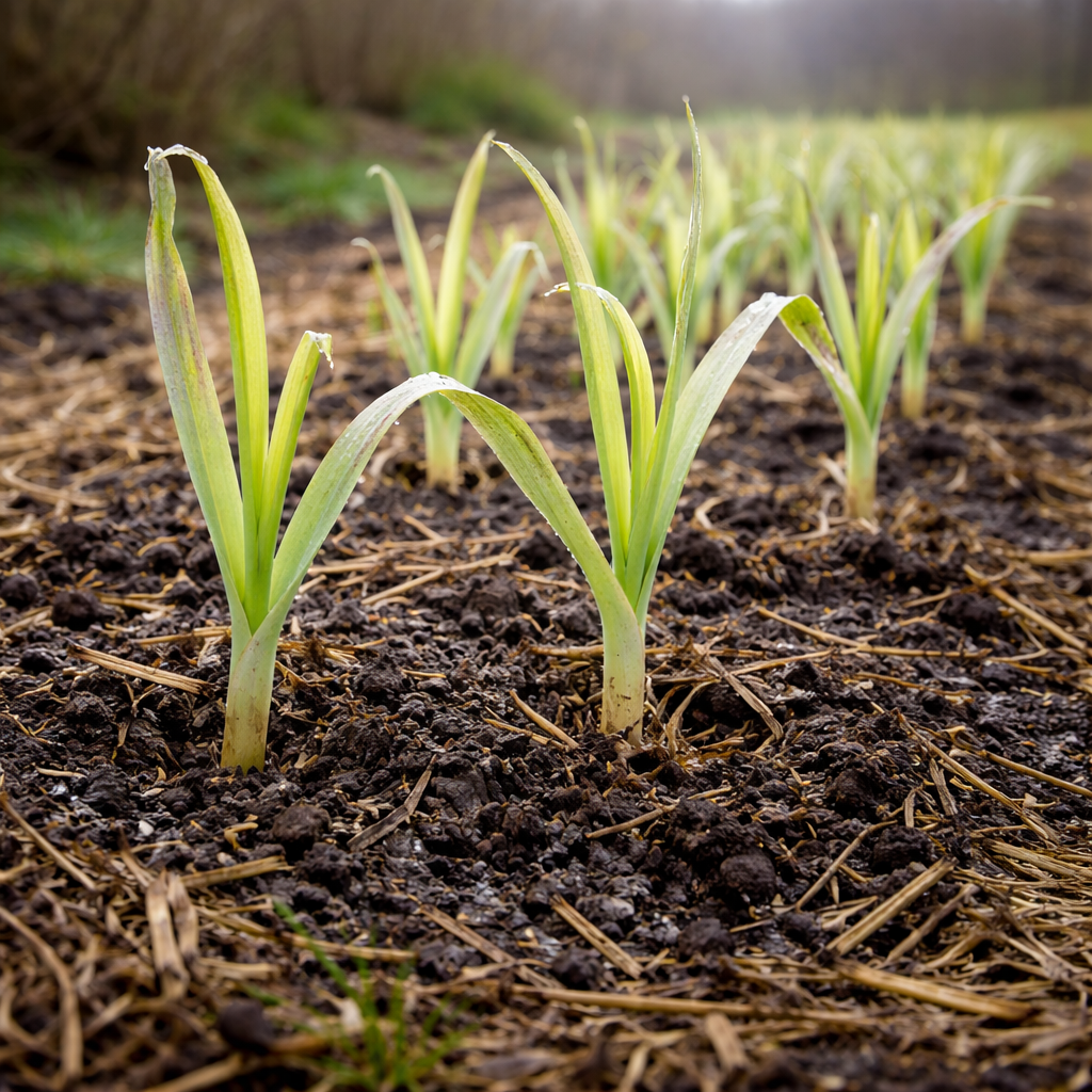 С приходом весны озимый чеснок появляется на участках как один из первых представителей сельскохозяйственных культур. Однако порой вместо ярко-зеленых листьев можно увидеть весьма удивительную картину: перья чеснока становятся бледными, почти прозрачными и выглядят мягкими, словно «стеклянные».