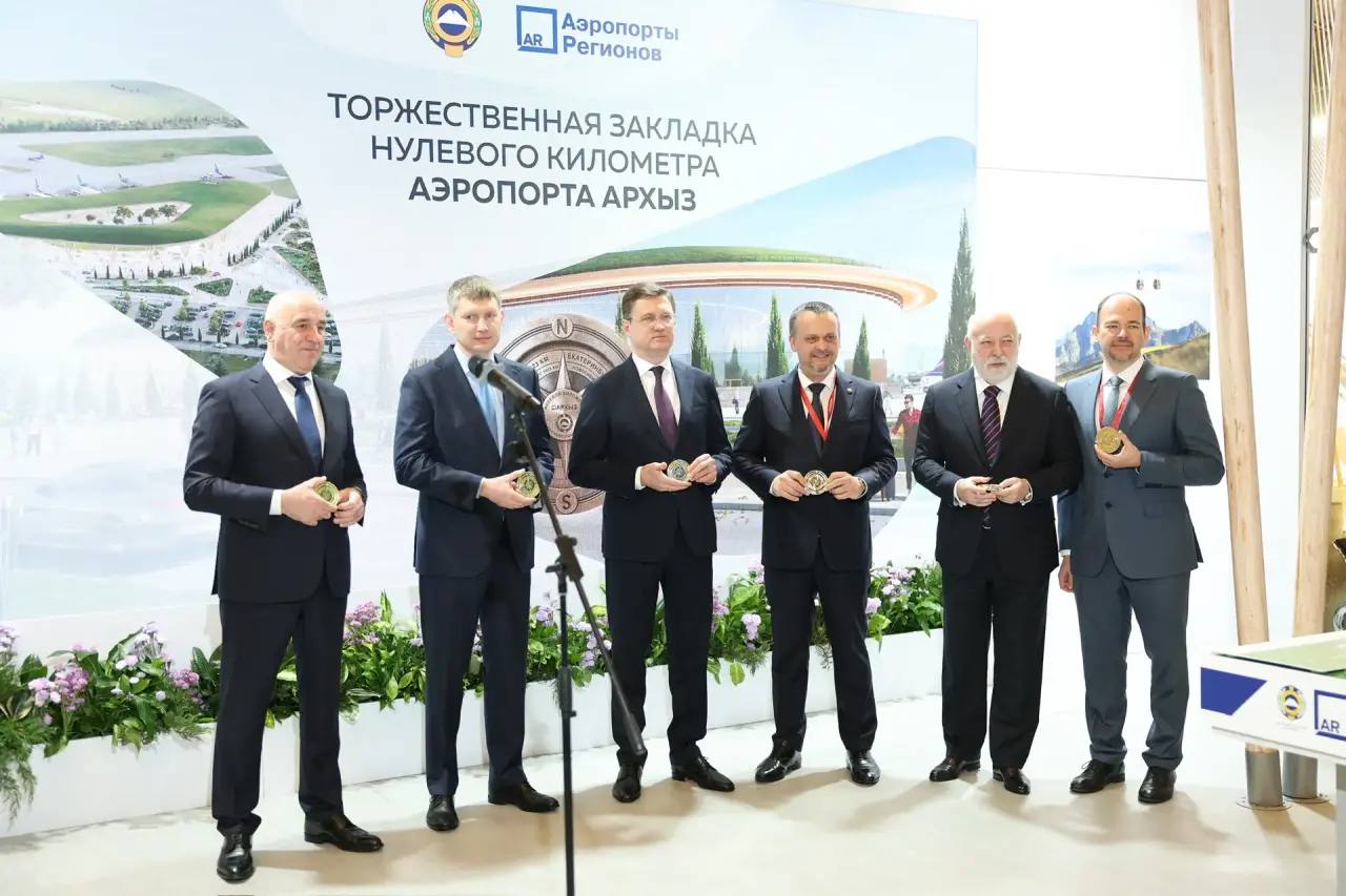 Старт строительно-монтажному этапу проекта аэропорта «Архыз» в режиме телемоста с площадки КИФа дали вице-премьер РФ Александр Новак, министр экономического развития РФ Максим Решетников, глава Минтранспорта России Андрей Никитин, Глава КЧР Рашид Темрезов, а также председатель совета директоров ГК «Ренова» Виктор Вексельберг и гендиректор УК «Аэропорты регионов» Евгений Чудновский.
