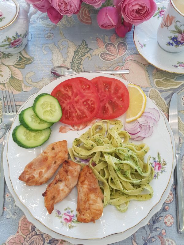 Вдохновение для легкого и изысканного обеда или позднего завтрака можно найти в этом простом, но ярком рецепте. Фетучини, нежная курица и ароматный соус песто — идеальная комбо для того, чтобы порадовать себя и близких.